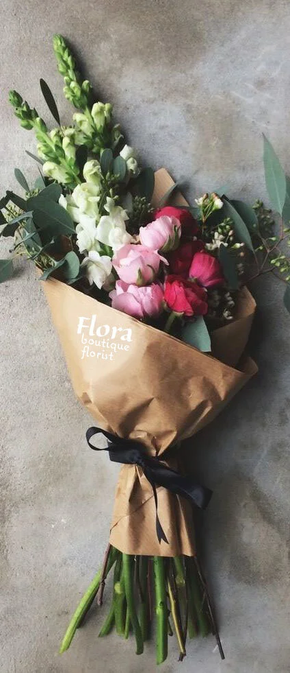 An independent, boutique florist logo design providing a simple, natural brand from logo to package design. Minimalist and type driven to show off high-quality products.